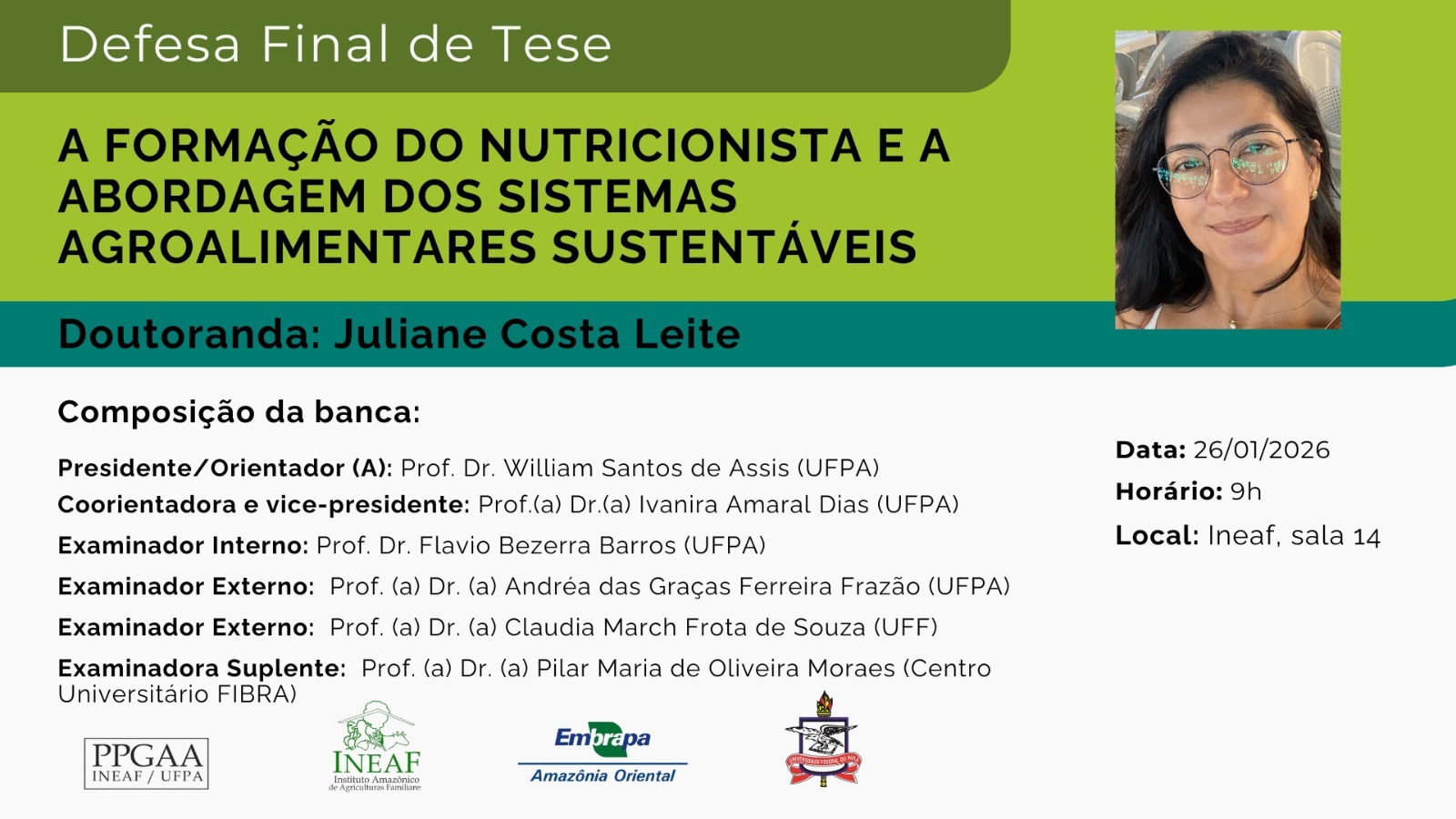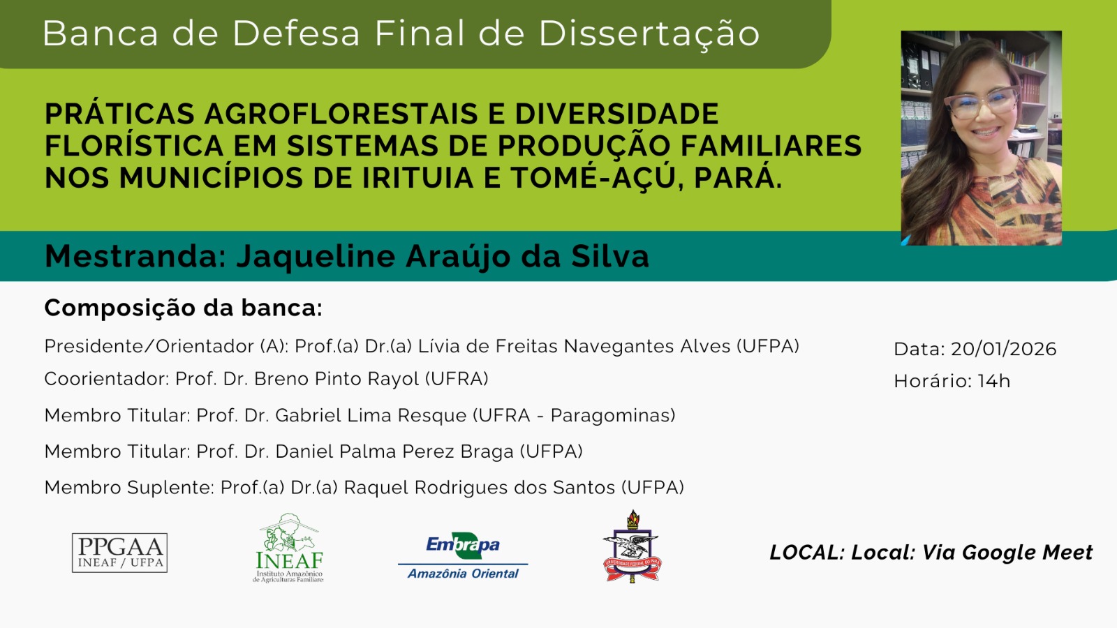 A Coordenação do Programa de Pós-graduação em Agriculturas Amazônicas (PPGAA), do Instituto Amazônico de Agriculturas Familiares (Ineaf), da Universidade Federal do Pará (UFPA),