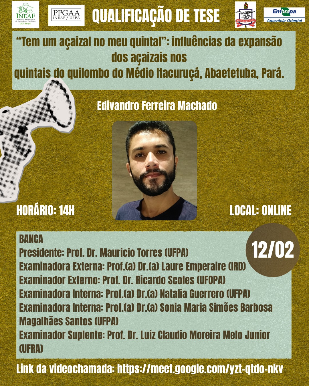 A Coordenação do Programa de Pós-graduação em Agriculturas Amazônicas (PPGAA), do Instituto Amazônico de Agriculturas Familiares (Ineaf), da Universidade Federal do Pará (UFPA),