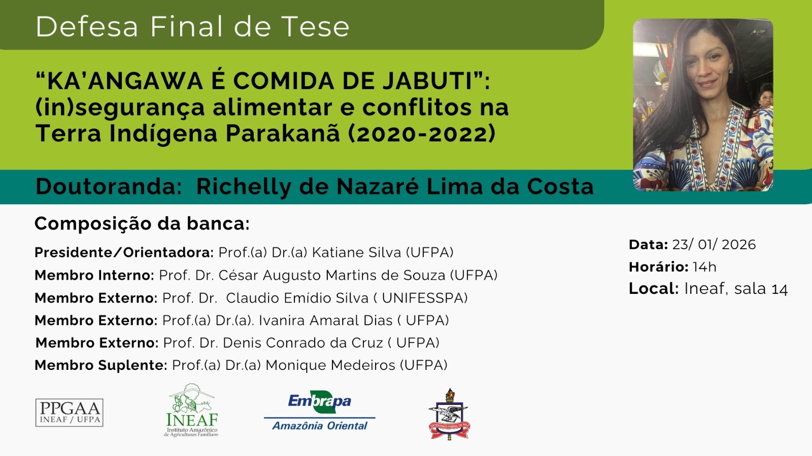 A palestra abordará a atuação da Emater-Pará na implementação da Assistência Técnica e Extensão Rural (ATER) Pública no Pará, com ênfase na ATER Digital como estratégia para o fortalecimento dos territórios rurais, da agricultura familiar e da justiça socioambiental na Amazônia.